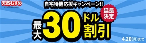 自宅待機応援最大30ドル割引キャンペーン
